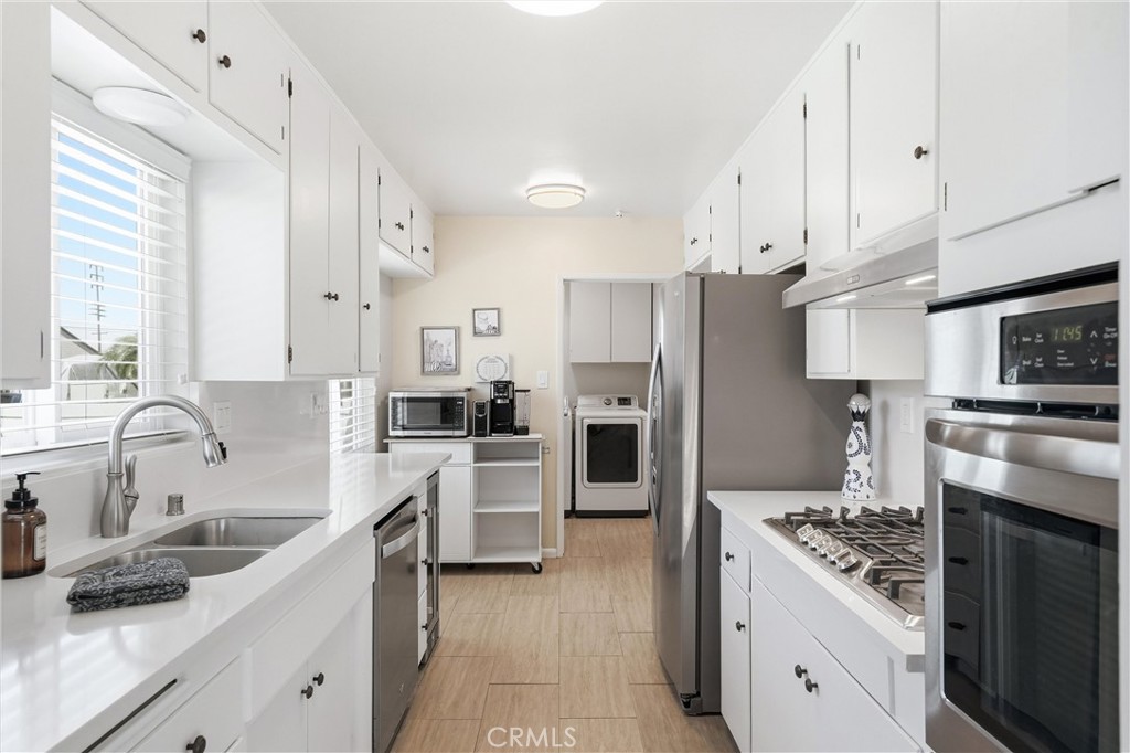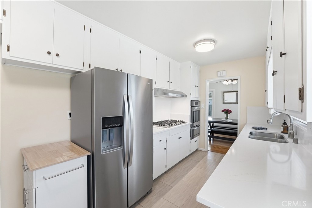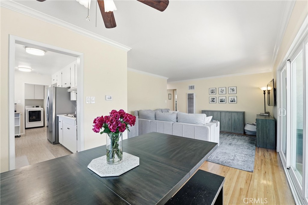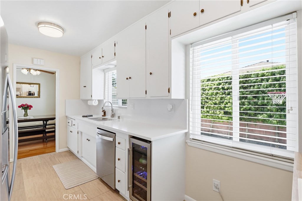 Welcome to 15434 Woodcrest Drive! This charming and well-maintained single family home is nestled in a highly desirable Whittier neighborhood. This inviting home offers 3 bedrooms, 1.5 bathrooms, and 1,143 square feet of thoughtfully designed living space, all situated on a generous 6,311 square foot lot. From the moment you arrive, you'll appreciate the home's beautiful curb appeal, enhanced by mature landscaping and a long concrete driveway leading to a detached two-car garage positioned at the rear of the property. Inside, the home is filled with great natural light and features a comfortable and functional layout ideal for everyday living. The spacious living room is highlighted by a cozy gas fireplace and flows seamlessly into the dining area, which showcases built-in cabinetry and shelving for added character and storage. A large sliding glass door off the living and dining rooms opens to the backyard, creating a perfect indoor-outdoor connection for entertaining. The kitchen is well-appointed with white wood cabinetry, quartz countertops, and a charming eat-in breakfast nook. Both the refrigerator and wine refrigerator are included, offering added convenience. Adjacent to the kitchen, the laundry room provides direct access to the side yard and driveway, along with a conveniently located powder room. The main bathroom has been tastefully remodeled, and all bedrooms are equipped with ceiling fans for added comfort. Additional upgrades include dual-pane windows throughout the home, enhancing energy efficiency and comfort year-round. Step outside to a spacious backyard featuring a large covered patio, perfect for outdoor dining or relaxing while overlooking the grassy yard area. The front and back yards are nicely landscaped, offering both beauty and functionality. Ideally located near Scott Avenue Elementary School and Granada Middle School, and zoned for the highly regarded La Serna High School, this home is also just minutes from Whittwood Town Center, offering a variety of shopping, dining, and entertainment options. Combining comfort, charm, and convenience, this is a wonderful opportunity to own a lovely home in a sought-after community.