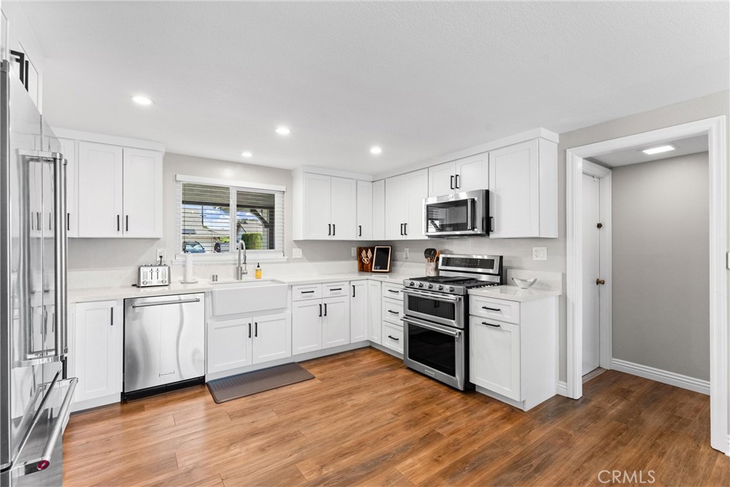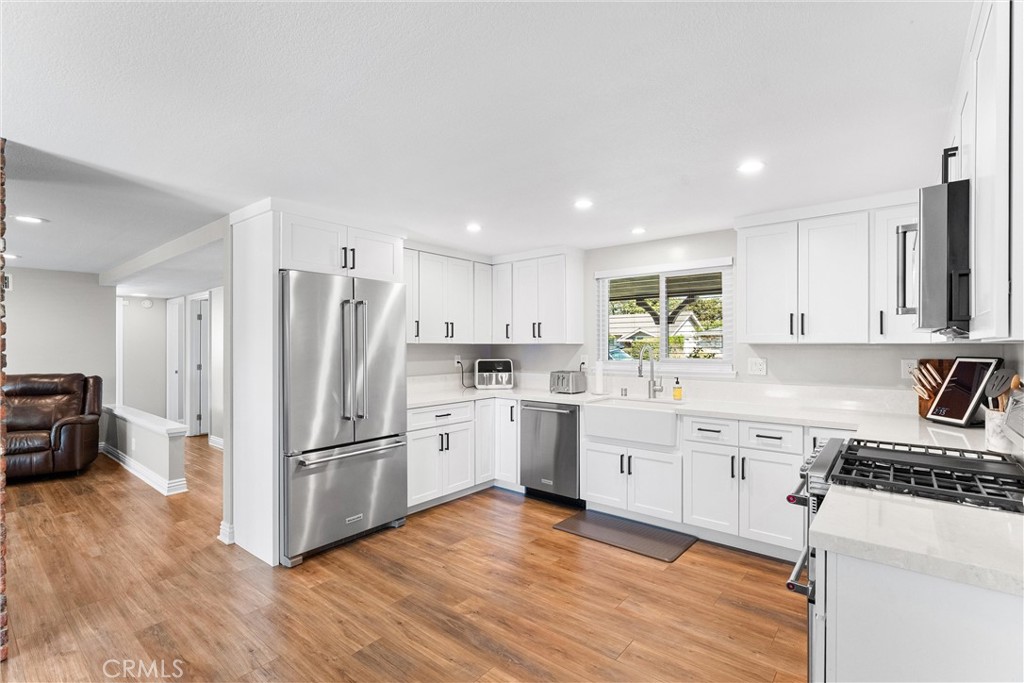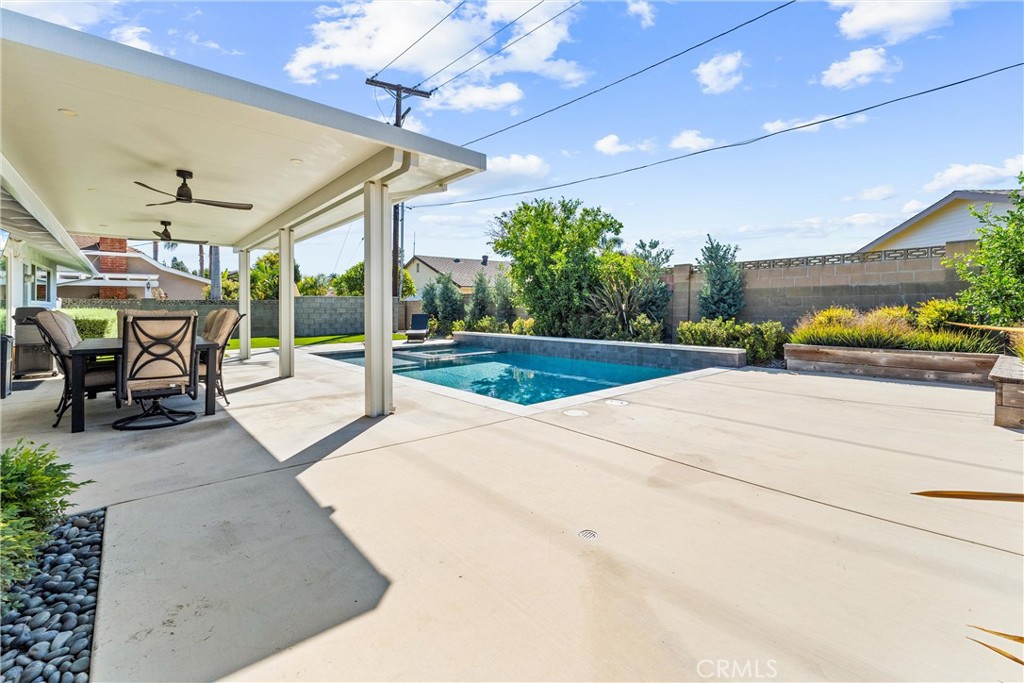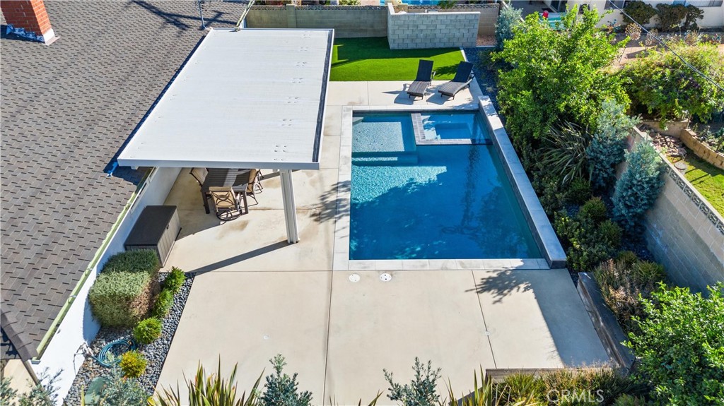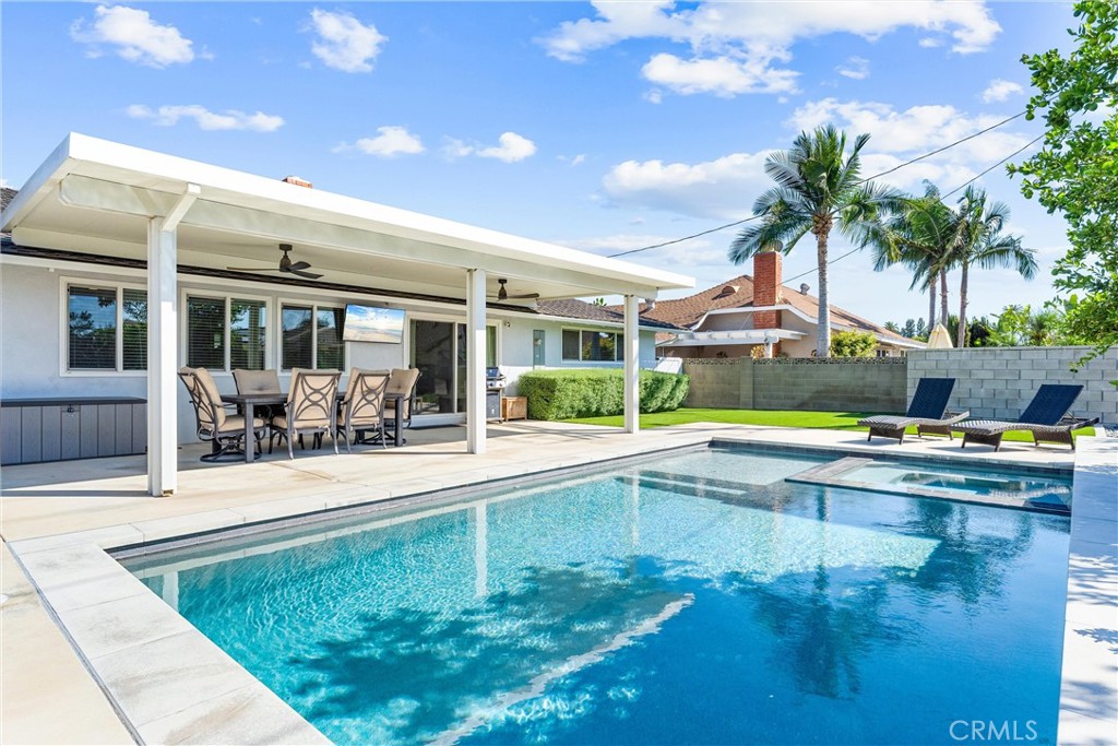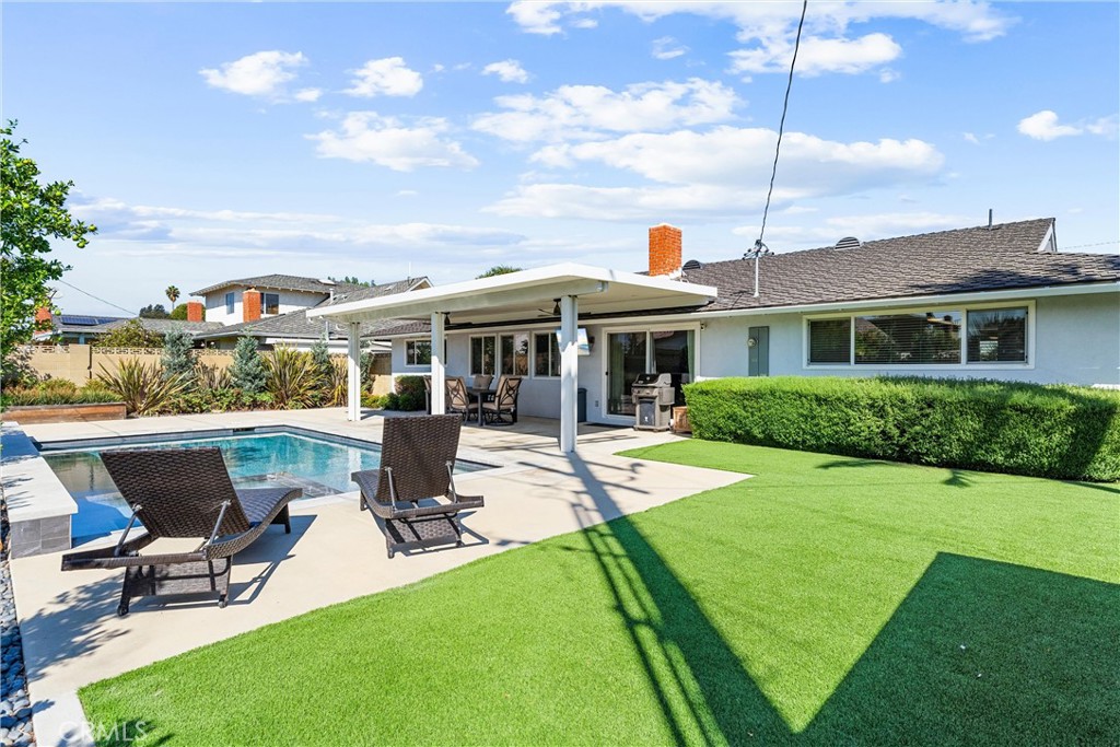 Welcome to 1707 Stanley Avenue! This beautifully remodeled single-story home is located in the heart of Placentia. This stunning residence sits on a 7,140 square foot lot and offers 1,612 square foot of thoughtfully designed living space featuring 4 bedrooms and 2 bathrooms. From the moment you arrive, you'll be captivated by the home's curb appeal, highlighted by a welcoming front porch with a sitting area, manicured landscaping, and a timeless exterior design. Step inside to discover an open-concept floor plan filled with natural light, crown molding, and dual-paned windows throughout. The spacious living room is anchored by a cozy gas fireplace with wall-to-wall windows providing stunning views of the entertainer's dream backyard. The kitchen is a showstopper with white cabinetry, quartz countertops, stainless steel appliances, and an abundance of counter space for cooking and gathering. Dining room has built-in cabinetry with upper glass doors and quartz counter tops, and sliding glass door which opens to the covered back patio. The primary suite is a private retreat with an attached en suite bathroom. En suite has a large walk-in shower with white subway tile, large built-in vanity with white cabinetry and quartz counter tops. While three additional bedrooms, which sit on the opposite side of the home, provide versatility for family, guests, or a home office. The hallway bathroom has dual sinks and a tub/shower combo. The true highlight of this home is the backyard, designed for year-round entertaining. Enjoy a sparkling pool and spa, artificial turf for low-maintenance beauty, a covered patio with two ceiling fans, and professional landscaping that creates a private outdoor oasis. Whether hosting a summer BBQ or relaxing poolside, this space is perfect for gatherings of any size. Additional features include a two-car garage with direct access, central heating and air, and plenty of storage. Ideally located near award-winning schools, shopping, restaurants, and with easy access to the 57, 91, and 55 freeways, this home offers both convenience and comfort. With its stylish upgrades, functional layout, and entertainer's dream backyard, 1707 Stanley Avenue is the perfect place to call home.