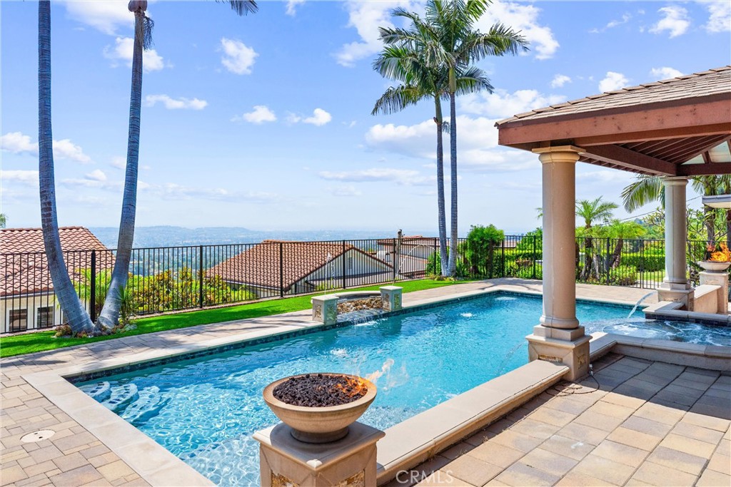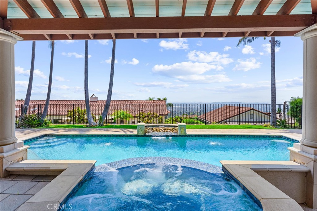 Welcome to 1929 Dorothea Road - A Private Retreat with Breathtaking 180deg Views! Nestled in the scenic hills of La Habra Heights, this one-of-a-kind single-story estate offers the perfect blend of timeless elegance, modern comforts, & ultimate privacy. Located on a beautifully landscaped 1.16-acre gated lot, this 4,511 square foot home features 4 spacious en suite bedrooms & 4.5 bathrooms--offering plenty of space for both luxurious living & entertaining. From the moment you arrive, you'll be impressed by the secure gated entry with call box & the dramatic driveway that winds up to a generous parking platform. Step inside to discover freshly painted interiors & brand-new flooring that gives the home a clean, contemporary feel. Formal living & dining rooms, & a stunning kitchen with crisp white cabinetry, quartz countertops, & a bright eat-in area create an inviting space for everyday living. Oversized south-facing windows & skylights fill the home with natural light & offer sweeping 180deg views--gaze out at Catalina Island, Fashion Island, dazzling sunsets, Disneyland fireworks, & city lights. It's a daily view you'll never tire of. The luxurious primary suite is a private haven with sitting area, large walk-in closet, dedicated office space, dual vanities, soaking tub, walk-in shower, & two private toilet rooms. A massive laundry room with abundant storage & a convenient powder room off the family room add to the thoughtful layout. Step outside to your own resort-style backyard, where entertaining is effortless. Enjoy the sparkling pool & spa, 300 square foot pool house with bathroom, built-in BBQ, & yet another stunning 180deg view from the pool deck. Mature fruit trees & lush landscaping surround the property, creating a peaceful & picturesque environment. Practicality meets luxury with ample guest parking, carport for an RV/Boat, & a 3-car garage. A separate 420 square foot ADU provides space for multi-generational living, another home office, or live-in help, complete with a kitchenette, bathroom, & storage. As a bonus, enjoy approximately $400/month in oil revenue income, adding value to an already exceptional property. With quick access to Harbor Blvd, the 57/60 FWYS, & located within the highly desirable Fullerton Joint Union High School District, this is your opportunity to own a serene, gated estate in a truly special community. Don't miss your chance to experience the beauty, privacy, & turnkey perfection of 1929 Dorothea Road--your dream home awaits.