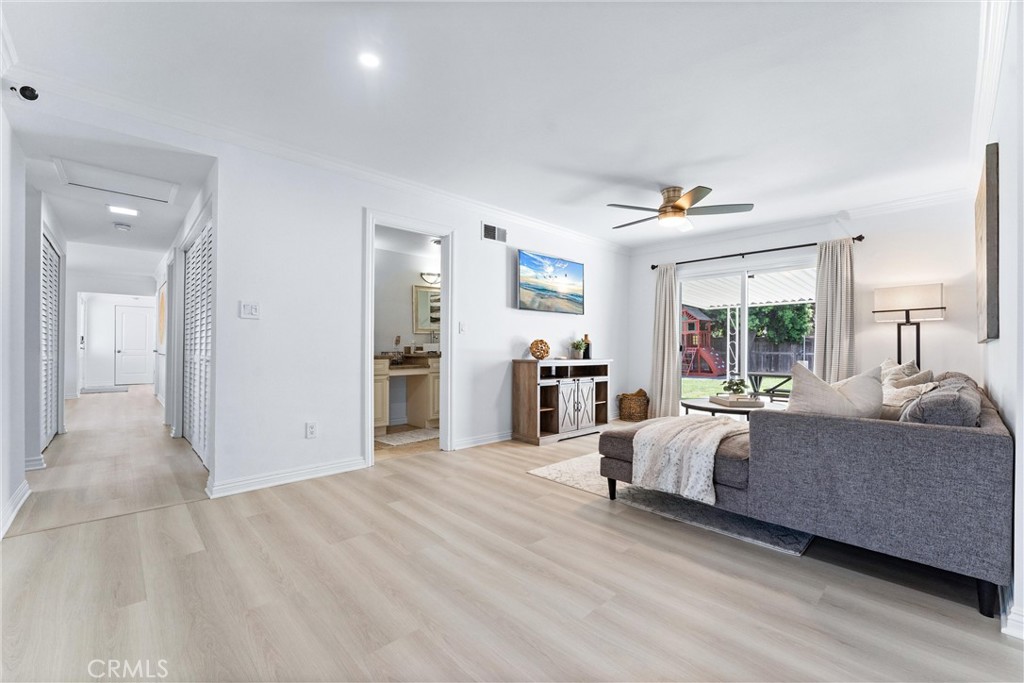 Welcome to 200 Friar Place! Tucked away at the end of a peaceful cul-de-sac, this beautifully updated single-story home, with a detached ADU, offers comfort, convenience, and versatility on a spacious 13,350 square foot lot. Boasting 2,296 square feet of total living space, the main residence features 4 bedrooms and 2 bathrooms across 1,980 square feet, complemented by a fully permitted 316 square foot ADU complete with its own bedroom, full bathroom, kitchenette, and living area--perfect for guests, extended family, or rental income. Stepping into the home, you are greeted into the foyer where the formal living sits to the left with stunning views of the backyard and is removed from the hub of the home offering privacy and relaxation. The remodeled kitchen sits at the front of the home with views of the neighborhood and front yard. Fully equipped with stainless steel appliances, quartz countertops, dark wood cabinetry, tile backsplash, and breakfast bar seating. The dining room is located off the kitchen and has two walls of floor to ceiling windows framing front yard views and providing plenty of natural light and peaceful views. The primary suite has a large closet, ceiling fan, views of the backyard, and an attached en suite. The remodeled attached en suite is spacious, dual sinks, and has custom finishes throughout. There are three additional bedrooms, two of them with large walk-in closets, ceiling fans, and all open to the family room, or kids space! The second bathroom has been remodeled and has dual sinks and neutral tones. The home has been freshly painted inside and out and showcases new luxury vinyl plank flooring, dual pane windows throughout, and indoor laundry. The attached two-car garage offers direct access to the home, has plenty of built-in storage, and access to the expansive lot which includes ample space for RV/boat parking. Located within walking distance to award-winning Laguna Road Elementary and zoned for Parks Junior High and Sunny Hills High School in the highly regarded Fullerton Joint Union High School District, this property is also close to CSUF, Fullerton College, St. Jude Hospital, both Fullerton and Coyote Hills golf courses, the Fullerton Loop, Laguna Lake, 57/91 FWYS, shopping, and dining. Don't miss out on your opportunity to see this amazing move-in ready home, complete with a fully permitted ADU...the possibilities are endless!