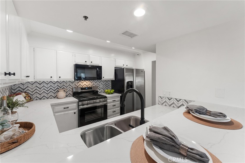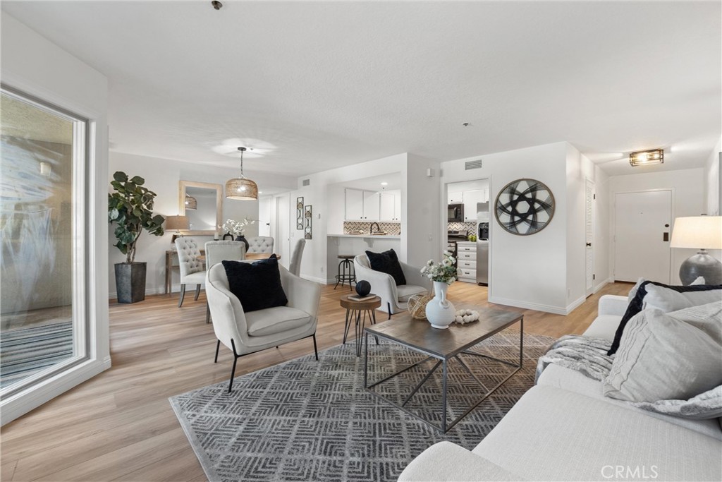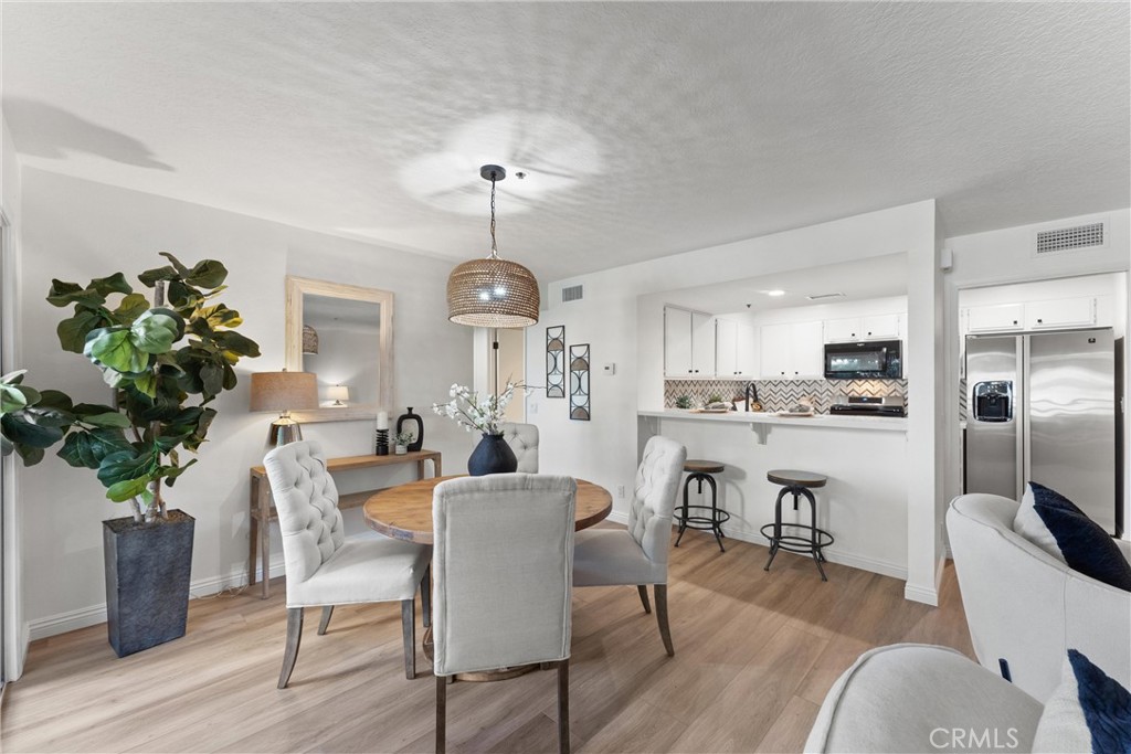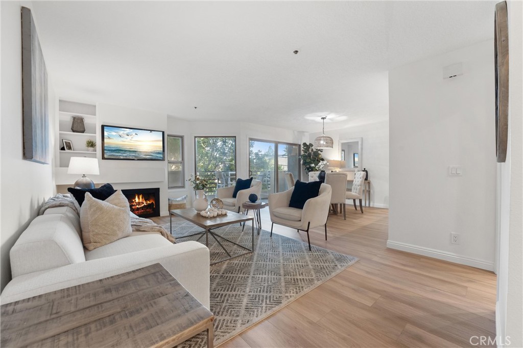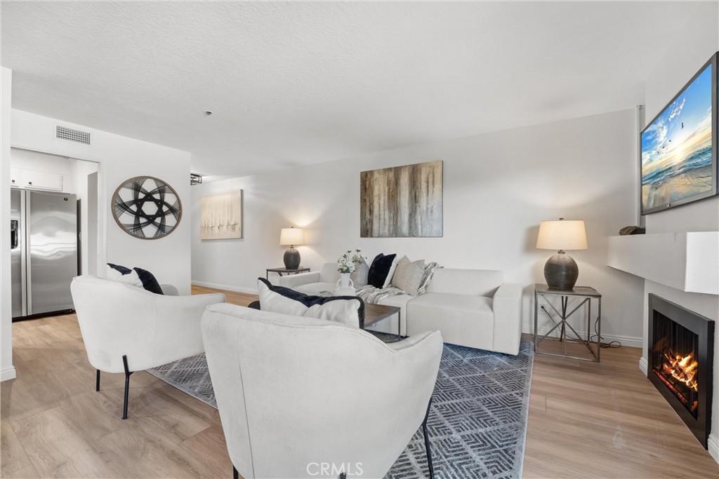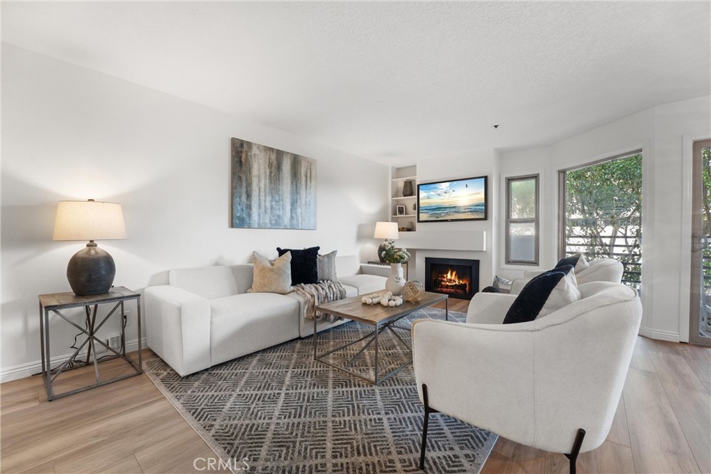 Welcome to 260 Cagney Lane #205! This beautifully updated 2-bedroom, 1-bathroom condominium sits in the highly sought-after gated community of Villa Balboa. This open concept floor plan seamlessly connects the living room, dining room and kitchen. The living room has a fireplace at the focal point and off the living room is the dining room with a large sliding glass door which opens to the private patio. Off the living and dining rooms is the updated kitchen, complete with neutral Quartz countertops, custom tile back splash, large sink, NEW garbage disposal and faucet, NEW freestanding gas range, dishwasher, built-in microwave, and refrigerator. There are two bedrooms, the primary suite with wall-to-wall closets with mirrored closet doors, and peak-a-boo views of the Pacific Ocean. The secondary bedroom is currently used as an office and has a built-in closet space. The bathroom has two separate vanity areas and a large tub/shower combo. With ample storage and closet space throughout the unit and a laundry closet in the Kitchen, this unit is well planned and functional! Consisting of 1,136 square feet of stylish living space, this home boasts fresh interior paint, NEW luxury vinyl plank flooring, and NEW LED recessed lighting throughout. There is underground assigned parking and additional parking around the complex. The unit is bright and airy and move-in ready! The HOA provides pools, spas, pickle ball courts, lushly landscaped grounds, walking paths, community room, and so much more. Located in Newport Beach just minutes from Pier, countless restaurants, shops, Orange County Fairgrounds, South Coast Plaza, Fashion Island, John Wayne Airport, 55/405/73 FWYS, Pacific Coast Highway, and much more. Zoned for some of Orange Counties best schools! This is the perfect place to enjoy the BEST of all that Southern California has to offer!