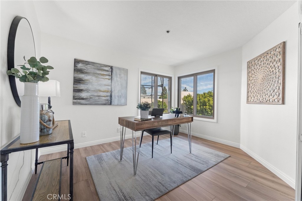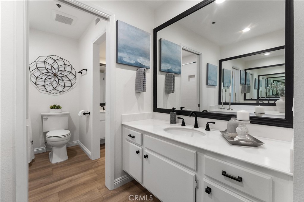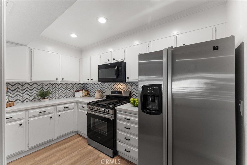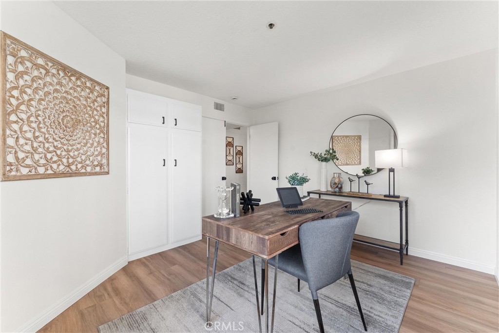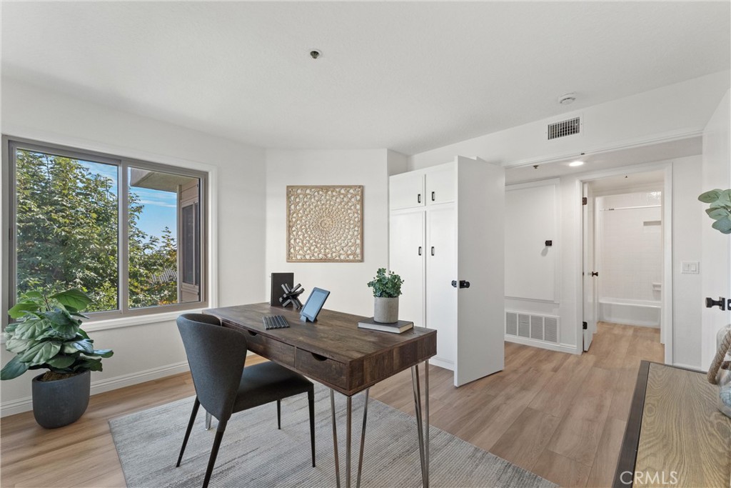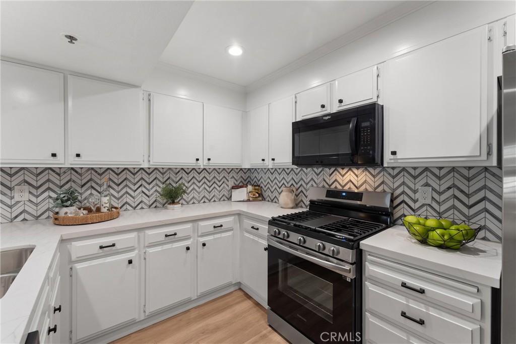 Welcome to 260 Cagney Lane #205! This beautifully updated 2-bedroom, 1-bathroom condominium sits in the highly sought-after gated community of Villa Balboa. This open concept floor plan seamlessly connects the living room, dining room and kitchen. The living room has a fireplace at the focal point and off the living room is the dining room with a large sliding glass door which opens to the private patio. Off the living and dining rooms is the updated kitchen, complete with neutral Quartz countertops, custom tile back splash, large sink, NEW garbage disposal and faucet, NEW freestanding gas range, dishwasher, built-in microwave, and refrigerator. There are two bedrooms, the primary suite with wall-to-wall closets with mirrored closet doors, and peak-a-boo views of the Pacific Ocean. The secondary bedroom is currently used as an office and has a built-in closet space. The bathroom has two separate vanity areas and a large tub/shower combo. With ample storage and closet space throughout the unit and a laundry closet in the Kitchen, this unit is well planned and functional! Consisting of 1,136 square feet of stylish living space, this home boasts fresh interior paint, NEW luxury vinyl plank flooring, and NEW LED recessed lighting throughout. There is underground assigned parking and additional parking around the complex. The unit is bright and airy and move-in ready! The HOA provides pools, spas, pickle ball courts, lushly landscaped grounds, walking paths, community room, and so much more. Located in Newport Beach just minutes from Pier, countless restaurants, shops, Orange County Fairgrounds, South Coast Plaza, Fashion Island, John Wayne Airport, 55/405/73 FWYS, Pacific Coast Highway, and much more. Zoned for some of Orange Counties best schools! This is the perfect place to enjoy the BEST of all that Southern California has to offer!