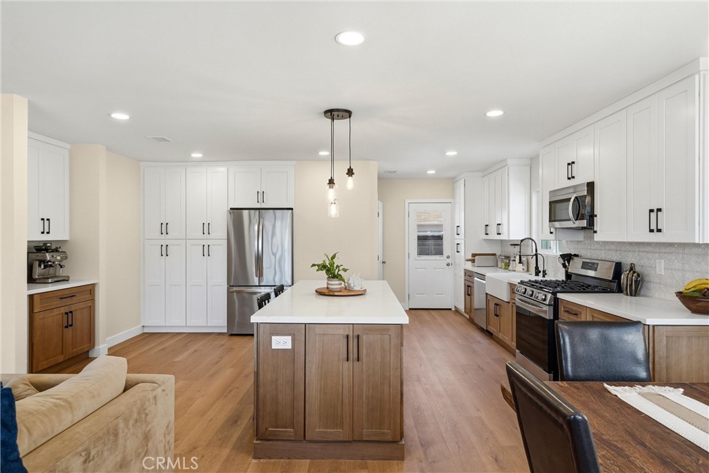 Welcome to 329 Catalpa Avenue! This beautifully remodeled home offers 1,506 square feet of thoughtfully designed living space on a generous 6,720 square foot lot, blending modern upgrades with a functional open-concept layout ideal for both everyday living and entertaining. The home features 3 spacious bedrooms and 2.5 bathrooms. The open living, dining, and kitchen areas create the heart of the home, offering a bright and welcoming atmosphere. The stunning kitchen showcases a large center island, wood-toned lower cabinetry paired with white upper cabinets, soft-close doors and drawers, a dedicated coffee bar area, abundant storage, and all-new stainless steel appliances. With ample countertop space and direct access to the backyard, this kitchen is designed for both style and functionality. The private primary suite offers a large walk-in closet and a beautifully appointed en-suite bathroom featuring dual sinks, tile flooring, and an oversized walk-in shower with custom tile work. A sliding glass door opens directly to the backyard, creating a seamless indoor-outdoor connection. Two additional bedrooms are generously sized with ample closet space, while the hallway bathroom features tile flooring and a tub/shower combination with custom tile finishes. A conveniently located hallway laundry closet enhances the home's practical layout. Throughout the home you'll find neutral paint tones, luxury vinyl plank flooring, recessed lighting, and dual-pane windows, creating a bright and modern feel. A powder room for guests adds extra convenience. The spacious backyard features a grassy area along with a firepit and seating space, perfect for relaxing or entertaining. A detached two-car garage is located at the rear of the property. Ideally located near Brea Mall, one of Orange County's premier shopping destinations with more than 170 specialty shops and major retailers, as well as Brea Creek Golf Course, Coyote Hills Golf Course, Fullerton Golf Course, several local parks, dining, and vibrant Downtown Brea. Convenient access to the 57 and 91 freeways makes commuting easy. Located within the highly regarded Brea-Olinda Unified School District and close to both California State University, Fullerton, and Fullerton College, this move-in ready home offers an exceptional opportunity to enjoy modern living in a prime Brea location.
