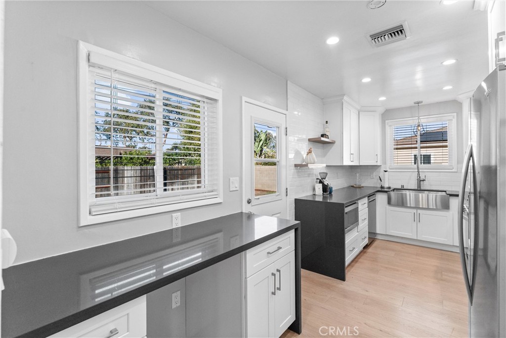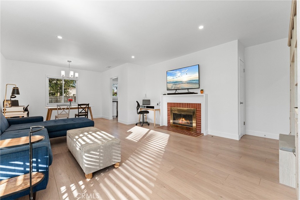 Welcome to 601 W. Southgate Avenue! This beautifully remodeled turnkey home is situated in one of Fullerton's most sought-after neighborhoods. This charming single-story residence offers 3 bedrooms, 1 bathroom, and 1,094 square feet of thoughtfully designed living space on a 6,383 square foot lot. From the moment you arrive, the inviting front porch and freshly updated exterior create exceptional curb appeal and a warm first impression. Step inside to find NEW neutral toned interior paint and luxury vinyl plank flooring that flow seamlessly throughout, creating a cohesive, modern aesthetic. The fully remodeled kitchen is the heart of the home, featuring white shaker cabinetry, quartz countertops, and stainless steel appliances including a gas range, built-in microwave, dishwasher, and refrigerator. A large stainless steel farmhouse sink and elegant subway tile backsplash complete this bright and stylish culinary space. The updated bathroom showcases a brand-new gray vanity with quartz countertop, a linen storage closet, and modern tile flooring, blending functionality with contemporary design. The living room offers large windows that fill the space with natural light, a gas fireplace with mantle, and a seamless flow to the dining area--ideal for both everyday living and entertaining. The bedrooms are generously sized, each offering ample closet space and comfort. Additional highlights include central air conditioning and heating, dual-paned windows, recessed lighting, NEW light fixtures throughout, and a two-car detached garage with plenty of storage potential. The expansive backyard provides endless possibilities for outdoor enjoyment--perfect for relaxing, hosting gatherings, or creating your dream outdoor retreat. With plenty of room for an ADU, pool/spa, or home expansion, this property offers outstanding flexibility and value. Conveniently located near shopping, dining, and entertainment, this home also offers quick freeway access to the 5, 91, and 57, ensuring an easy commute. Situated within the highly regarded Fullerton Joint Union High School District, this residence offers the perfect blend of comfort, convenience, and quality living. Move-in ready and tastefully upgraded, 601 W. Southgate Avenue perfectly combines classic Fullerton charm with today's modern finishes -- an exceptional opportunity to call one of the city's most desirable neighborhoods home. Don't miss your opportunity to make this your home!