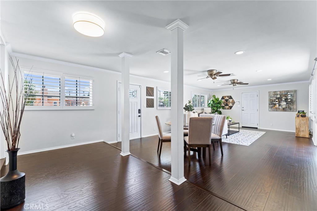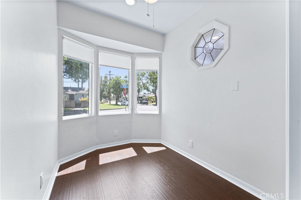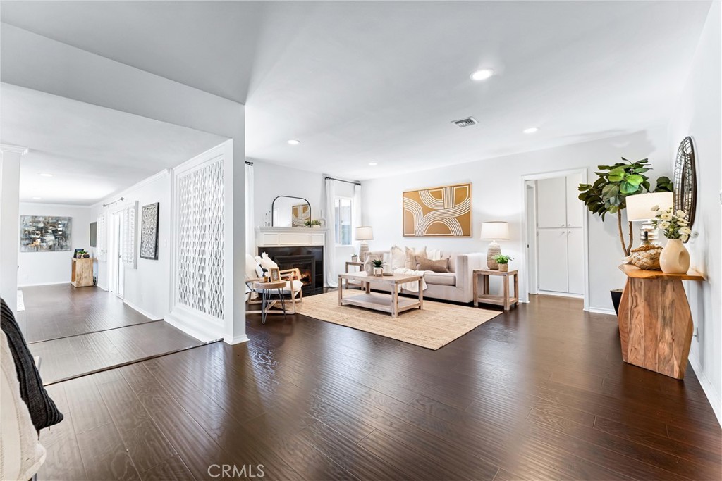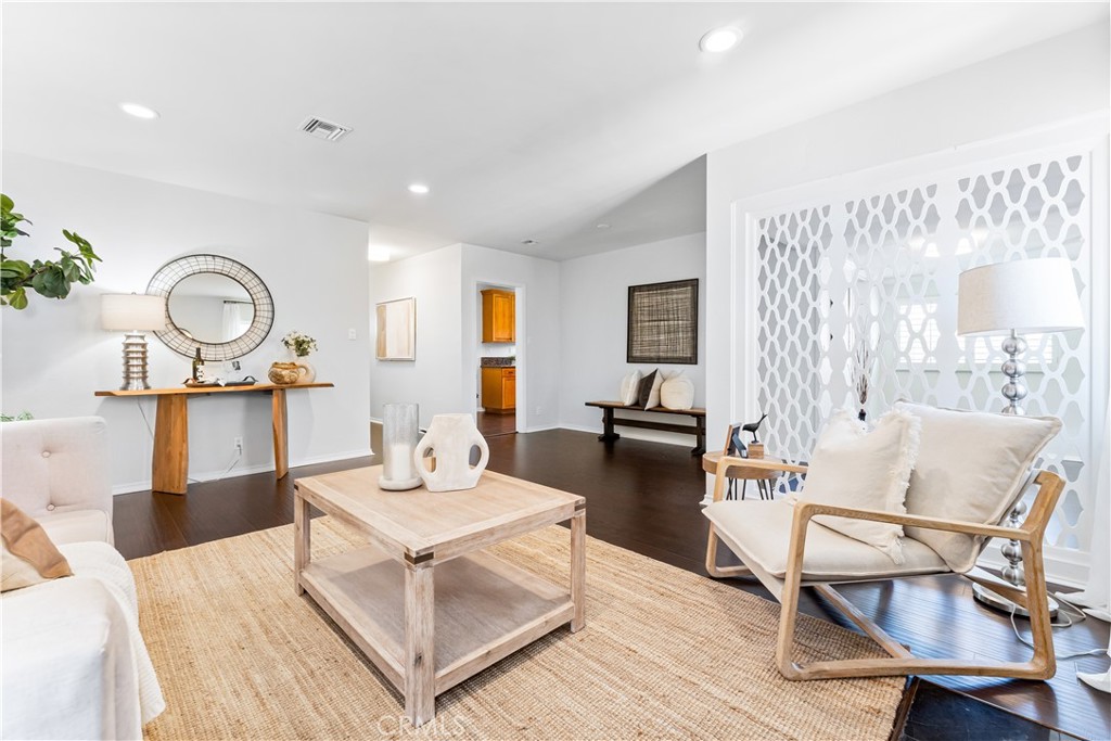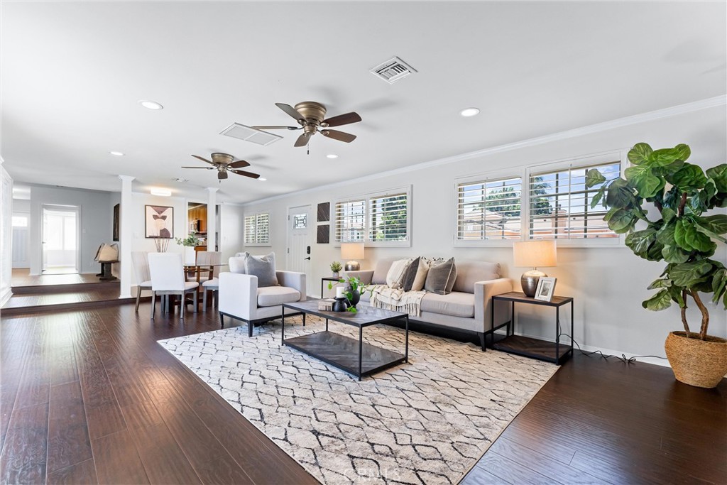 Welcome to 7603 Noren Street! This beautifully remodeled single level three bedroom, two bathroom residence exudes both style and comfort. With 1,952 square feet of thoughtfully designed living space, this home is situated on a generous 6,246 square foot corner lot, offering a perfect blend of indoor luxury and outdoor enjoyment. Entering the home, you are greeted by the spacious living room featuring a cozy wood-burning fireplace, perfect for relaxing evenings. There is a large family room which is ideal for gatherings and has a large sliding glass door to the backyard. The kitchen is a chef's delight, equipped with wood cabinetry, granite countertops, corner window above the sink, stainless steel appliances, including beverage/wine refrigerator, and ample counter space. The dining room sits off the kitchen and overlooks the family room and there is also an additional eating area in the kitchen. There is a small dedicated office space off the kitchen which provides a quiet retreat for work or study. The primary suite is a true sanctuary, with an oversized closet, and sliding doors that lead to the back patio. The fully remodeled en suite bathroom features dual sinks with quartz countertops, a large walk-in shower, and a luxurious soaking tub. There are two additional bedrooms with spacious closets. Each of the bedrooms boasts of mirrored closet doors, adding a sense of openness and light, designer light fixtures, and large windows to provide great views of the outdoors. Wood flooring, neutral paint tones, recessed lighting, and plantation shutters, which add a touch of sophistication to the living spaces, ensuring privacy and light control. The spacious two-car garage with direct access provides convenience. The beautifully maintained lot provides plenty of space for outdoor activities and entertaining, and includes mature landscaping, outdoor living spaces, and a spacious private backyard. With its prime location, modern upgrades, and move-in-ready condition, this North Downey home is a rare find. Centrally located near shopping, restaurants, transportation, and conveniently located near the 5/105/605/710 freeways. Situated within the Downey Unified School District with access to some of the areas best schools. Don't miss the opportunity to call this exceptional property your home!