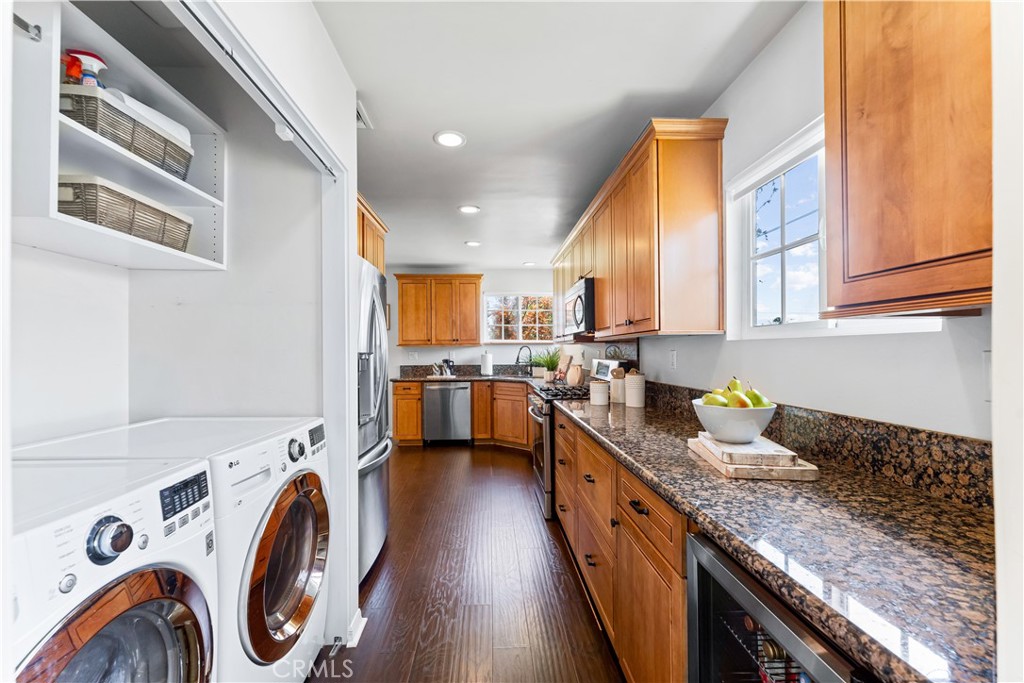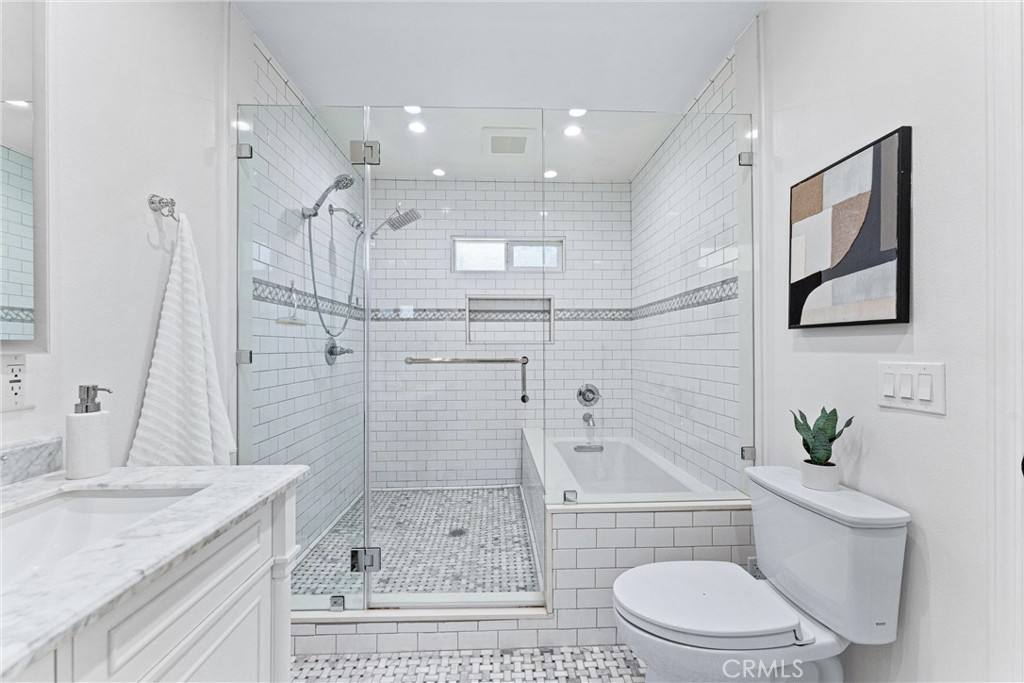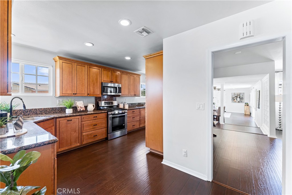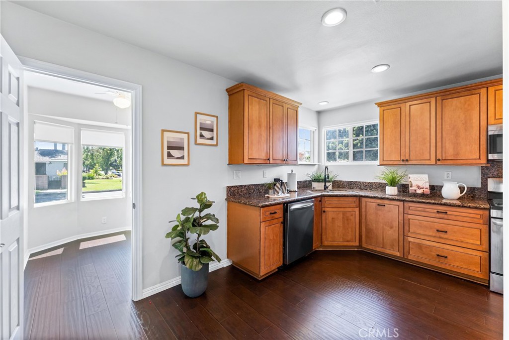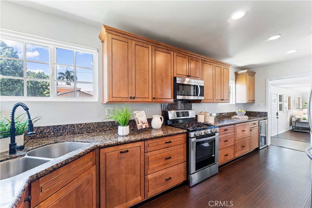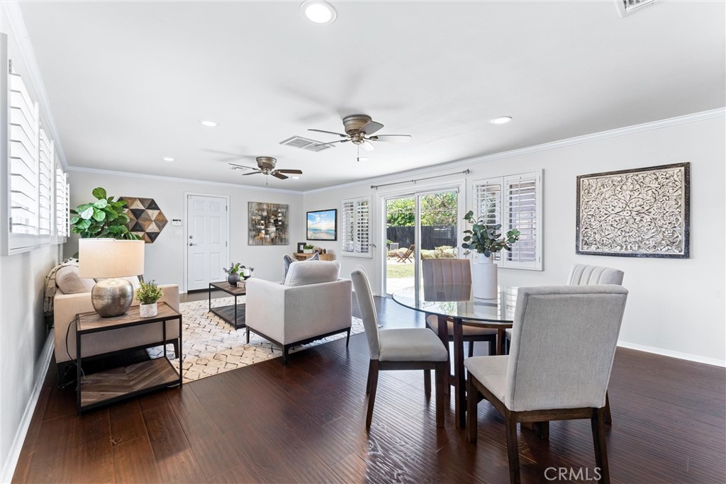 Welcome to 7603 Noren Street! This beautifully remodeled single level three bedroom, two bathroom residence exudes both style and comfort. With 1,952 square feet of thoughtfully designed living space, this home is situated on a generous 6,246 square foot corner lot, offering a perfect blend of indoor luxury and outdoor enjoyment. Entering the home, you are greeted by the spacious living room featuring a cozy wood-burning fireplace, perfect for relaxing evenings. There is a large family room which is ideal for gatherings and has a large sliding glass door to the backyard. The kitchen is a chef's delight, equipped with wood cabinetry, granite countertops, corner window above the sink, stainless steel appliances, including beverage/wine refrigerator, and ample counter space. The dining room sits off the kitchen and overlooks the family room and there is also an additional eating area in the kitchen. There is a small dedicated office space off the kitchen which provides a quiet retreat for work or study. The primary suite is a true sanctuary, with an oversized closet, and sliding doors that lead to the back patio. The fully remodeled en suite bathroom features dual sinks with quartz countertops, a large walk-in shower, and a luxurious soaking tub. There are two additional bedrooms with spacious closets. Each of the bedrooms boasts of mirrored closet doors, adding a sense of openness and light, designer light fixtures, and large windows to provide great views of the outdoors. Wood flooring, neutral paint tones, recessed lighting, and plantation shutters, which add a touch of sophistication to the living spaces, ensuring privacy and light control. The spacious two-car garage with direct access provides convenience. The beautifully maintained lot provides plenty of space for outdoor activities and entertaining, and includes mature landscaping, outdoor living spaces, and a spacious private backyard. With its prime location, modern upgrades, and move-in-ready condition, this North Downey home is a rare find. Centrally located near shopping, restaurants, transportation, and conveniently located near the 5/105/605/710 freeways. Situated within the Downey Unified School District with access to some of the areas best schools. Don't miss the opportunity to call this exceptional property your home!
