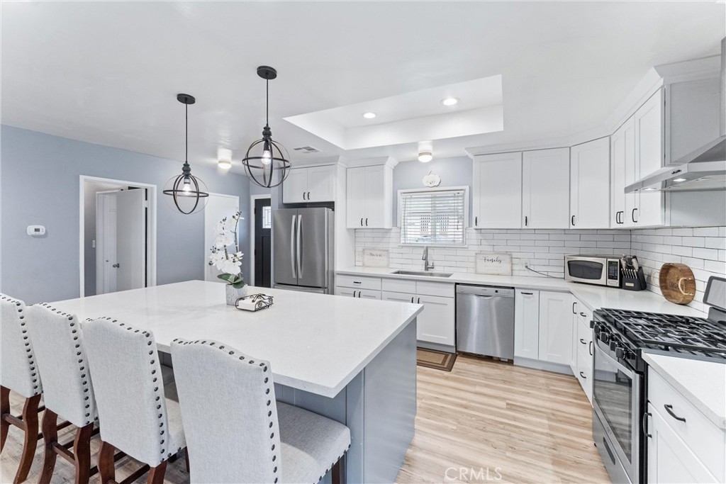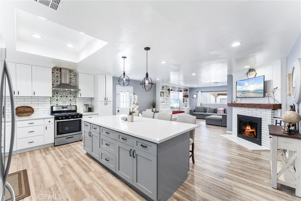 Welcome to 7932 Euclid Avenue! Located in the highly desirable Michigan Park neighborhood, this move-in ready single-story home offers 3 bedrooms and 2 bathrooms with 1,486 square feet of thoughtfully designed living space and sits on a 5,947 square foot lot. Stepping in the home, you are greeted with an open concept floor plan with plenty of windows to allow natural light to flood the home. The fully remodeled kitchen is the standout hub of the home with its large center island featuring gray cabinetry, quartz countertops, white cabinetry, a white subway tile backsplash, a custom tile design behind the stove, stainless steel appliances, and farmhouse-style stainless steel sink. The kitchen flows seamlessly into the dining and living areas, creating an ideal space for both everyday living and entertaining. There is a wood burning gas fireplace, luxury vinyl plank flooring, neutral paint tones, and a large wall of built-in cabinets. The primary bedroom has a large closet and attached bathroom. There are two additional bedrooms with ample closet space and plenty of natural light. The hallway bathroom has been upgraded with new vanity, lighting, flooring, paint, and has a tub/shower combo. Additional updates include recessed lighting, ceiling fans, custom pendant lights, newer front door, newer fiber cement siding, and much more add to this move-in ready home. Outside, enjoy a spacious backyard with a large side yard and a generous covered patio perfect for relaxing or hosting guests. The lushly landscaped yard provides beautiful curb appeal and is definitely the pride of the neighborhood! The long concrete driveway leads to a detached two-car garage, offering plenty of parking, potential RV/boat parking, and plenty of privacy. Adding to the homes curb appeal is newer fiber cement siding. Located near shopping, restaurants, Michigan Park, and close access to transportation. This home is within the school boundaries for Ocean View Elementary School and sits just below Mar Vista. This home won't last long...stop by and see it today!