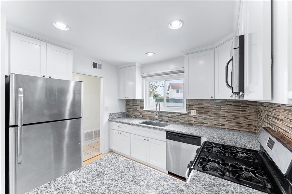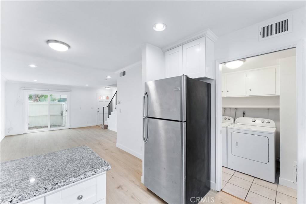 Welcome to this beautifully upgraded town home style attached SFR! This home features 2 bedrooms, 1.5 bathrooms, has 2 great private patio spaces (one in the front of the home and one in the back of the home, a large 2 car garage that opens to your private back patio and allows entrance to the home, separate indoor laundry room, and is situated on a quiet serene street within Highland Greens. This home has a newer HVAC system, including newer ducting system, newer water heater, new LVP flooring downstairs, new carpet on the stairs, dual paned windows, stainless steel appliances, remodeled kitchen with granite counter tops, newer white kitchen cabinetry, recessed lighting, upgraded bathrooms, and so much more! Refrigerator, Microwave, and Washer & Dryer are also included! The home is bright and airy, has a great open floor plan, and plenty of additional storage throughout the home. The association provides pools, playground, clubhouse, and plenty of green space with walking trails throughout. Conveniently located in North Orange County near the 5 and 91 freeways, restaurants, shopping centers, Los Coyotes Country Club, and is zoned for the award-winning Fullerton Joint Union High School District zoned for Sunny Hills High School.