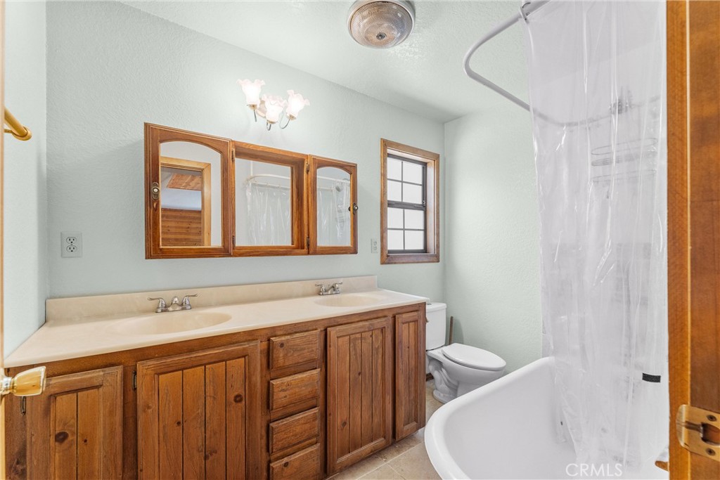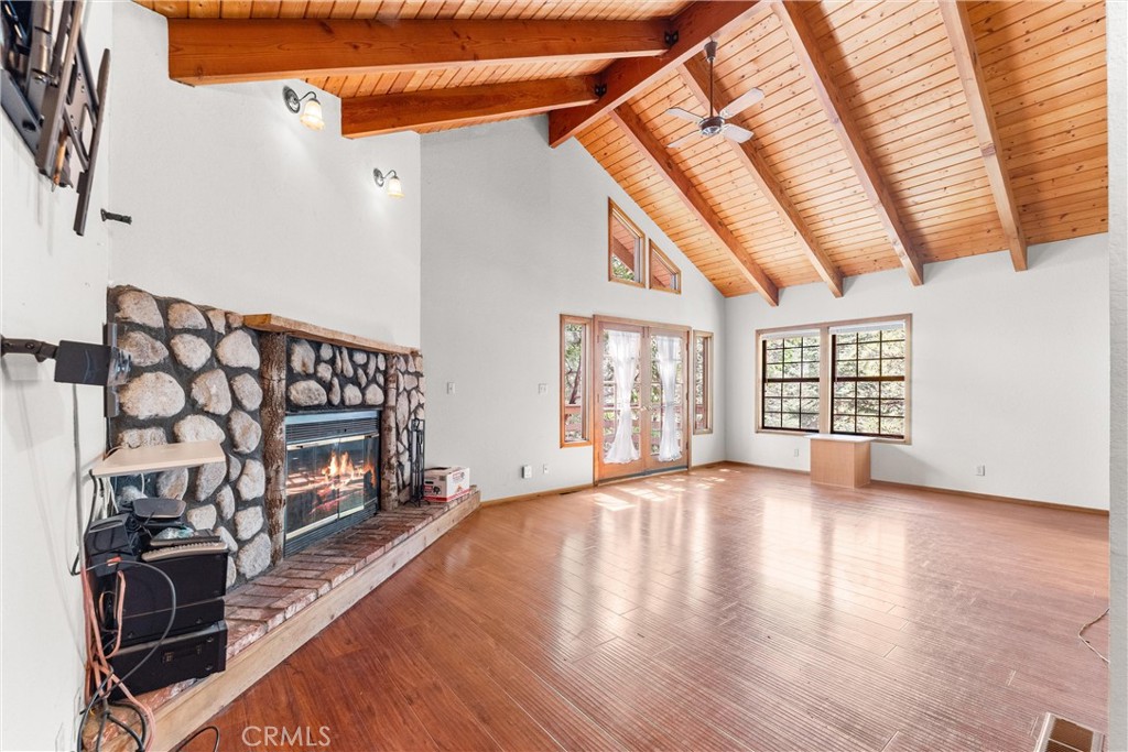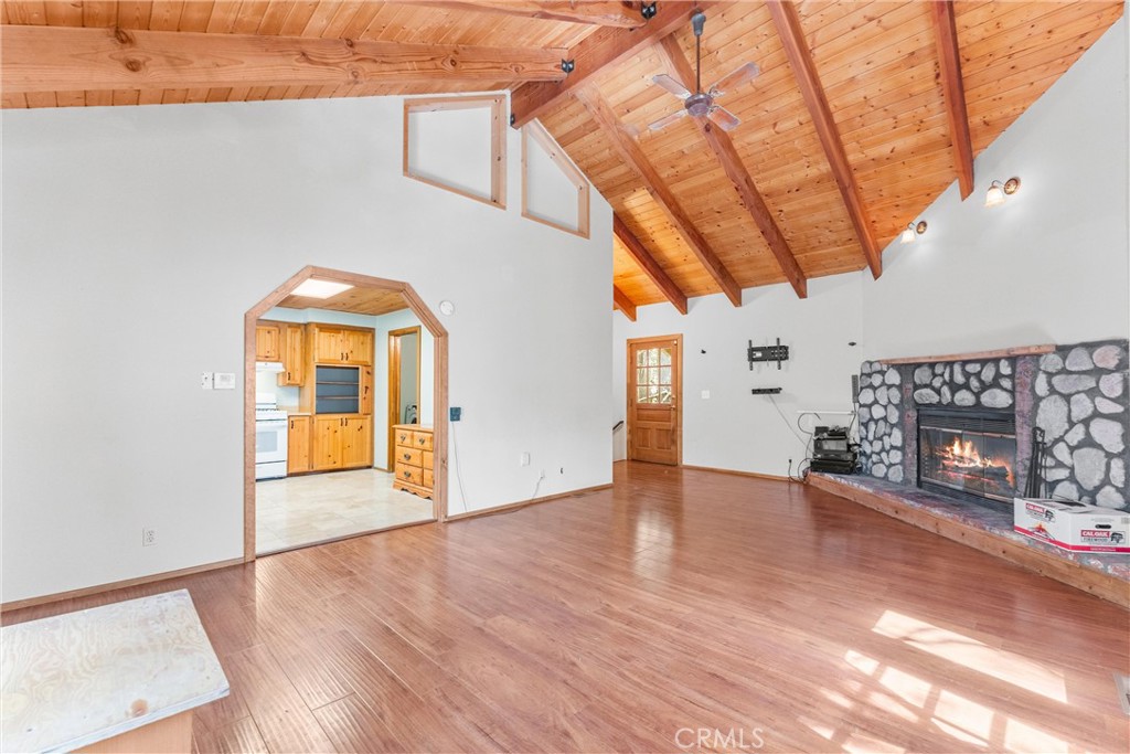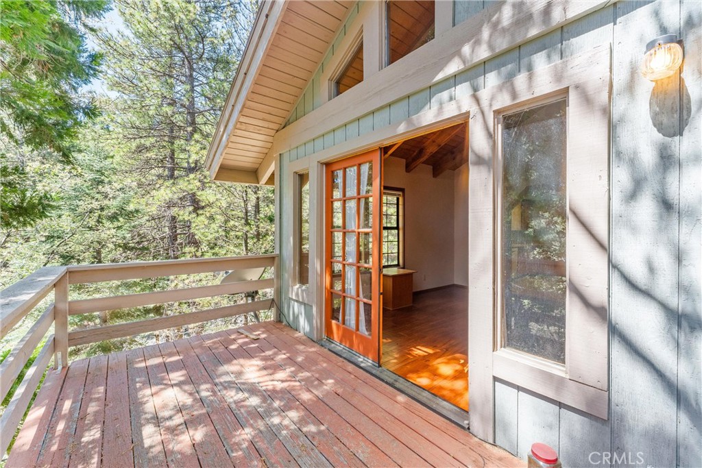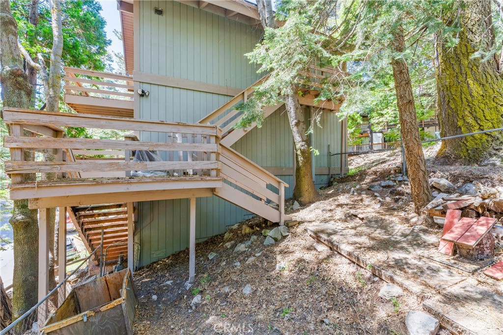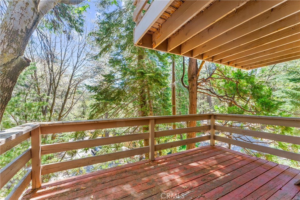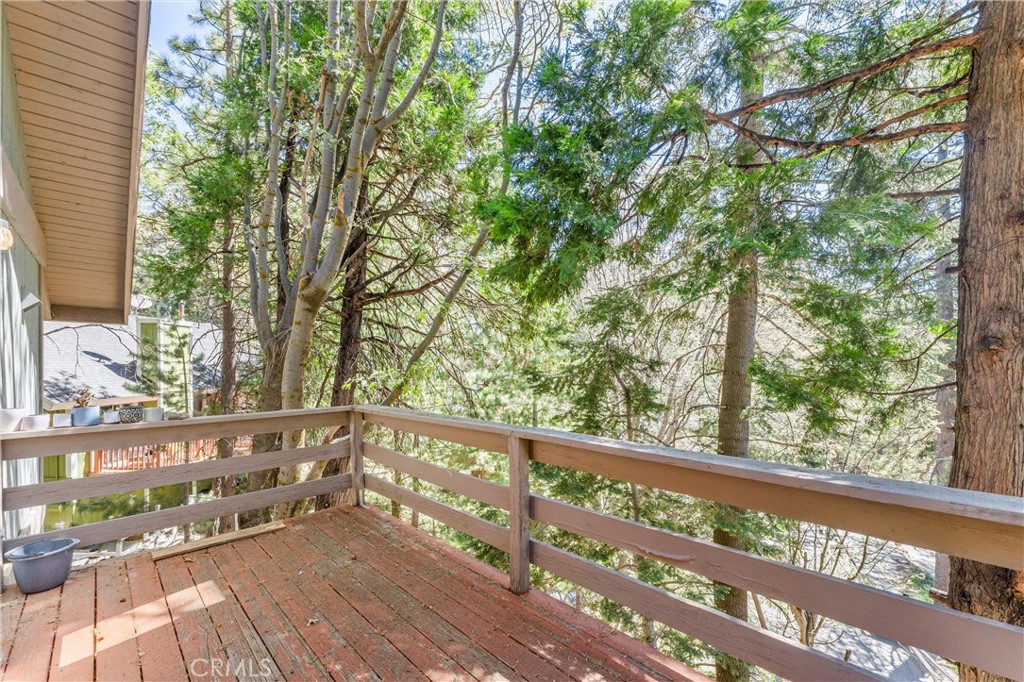 Welcome to 858 Sierra Vista Drive! This stunning 3-story chalet-style property offers an abundance of features and versatile spaces, perfect for a primary residence or a vacation home! Consisting of 2 Bedrooms, 3.5 Bathrooms: Two spacious primary suites, each with its own en suite bathroom, provide ultimate privacy and comfort. The third floor serves as the main level, featuring a large living room with a cozy fireplace, cathedral ceilings, and access to a charming deck, perfect for relaxing or entertaining. The third floor also includes a spacious dining area, a well-equipped kitchen, a convenient laundry room, a half bathroom, and the front entry. The second level of the home contains the two spacious primary suites, each with its own en suite bathroom, to provide ultimate privacy and comfort. Primary Suite 1 provides the warmth of a second fireplace, a walk-in closet, a private deck to unwind and soak in the serene surroundings, ands the attached en suite has a lavish clawfoot tub with a shower. Primary Suite 2 is spacious with an attached en suite that has a tub/shower combo. The first level features a large flex space that can be used as a bedroom, playroom, or any other purpose to suit your needs, along with an additional bathroom and a secondary entrance. There is ample built in storage on this level as well. This chalet-style home is designed to offer both practicality, comfort, and versatility, with its multiple decks, spacious interiors, and thoughtful layout. Whether you're enjoying a quiet evening by the fire or hosting friends and family, this home is sure to impress. Don't miss the opportunity to make this exceptional property your own! Located just 10 minutes from Lake Arrowhead Village, 12 minutes to Lake Gregory, and 45 minutes to Big Bear Lake and Ski Resorts. There is an abundance of year round outdoor activities just minutes away from the property...whether you like to Snow Ski, Boat, Hike, Mountain Bike, or more...this home is centrally located and sits in a great neighborhood surround by beautiful mature trees.