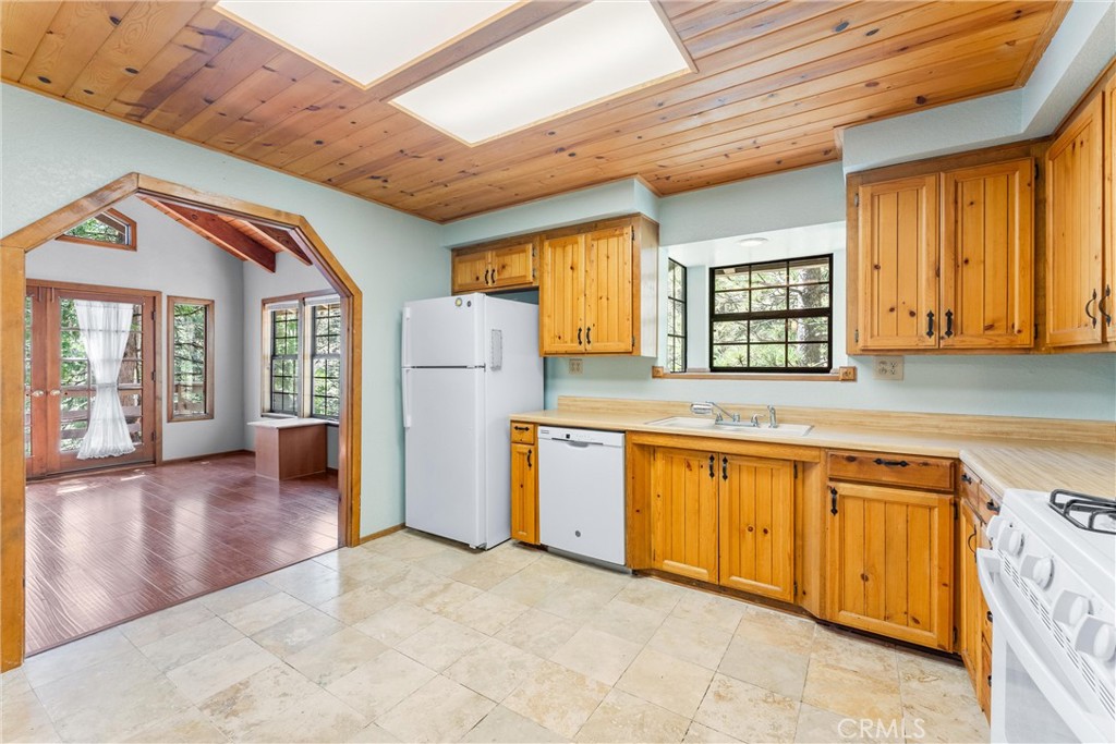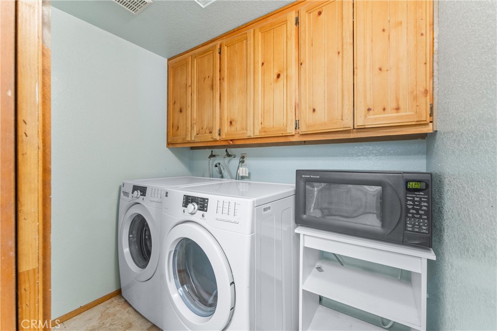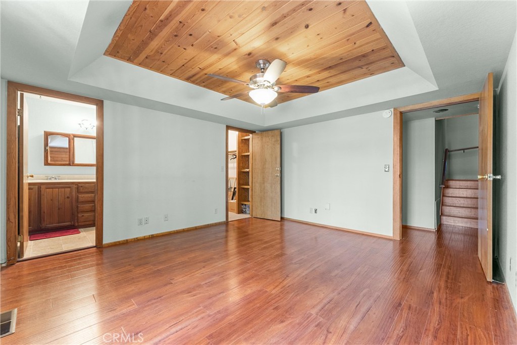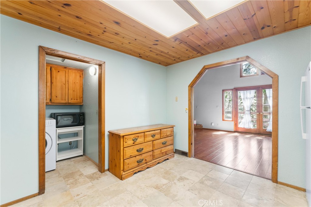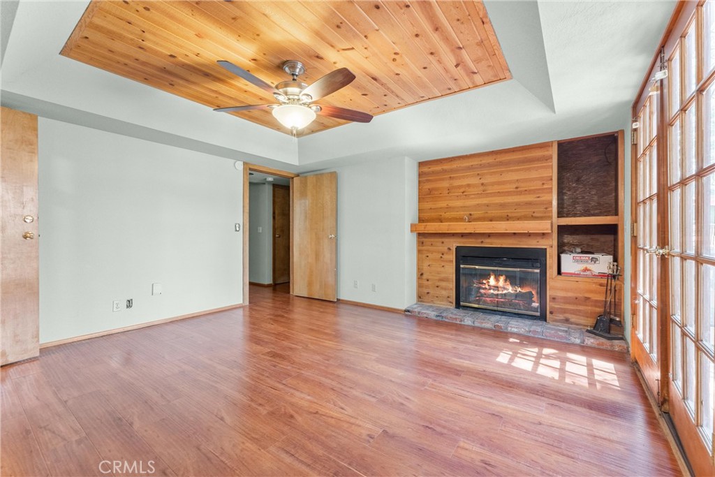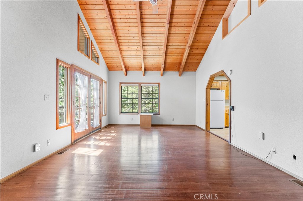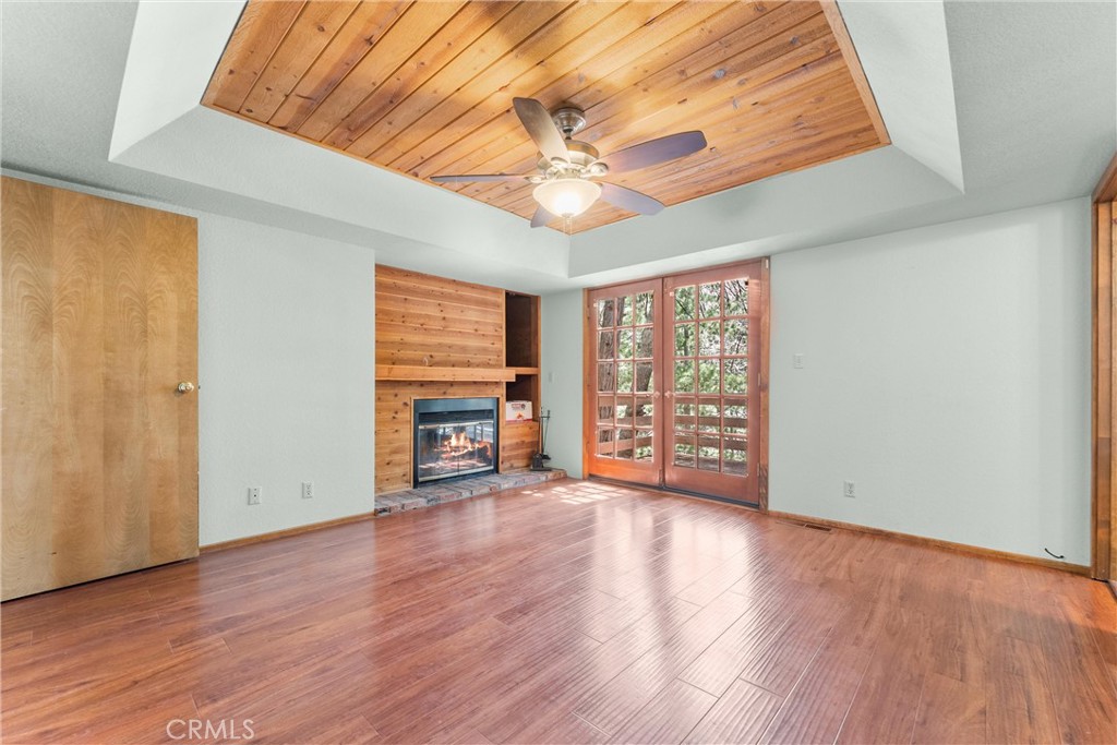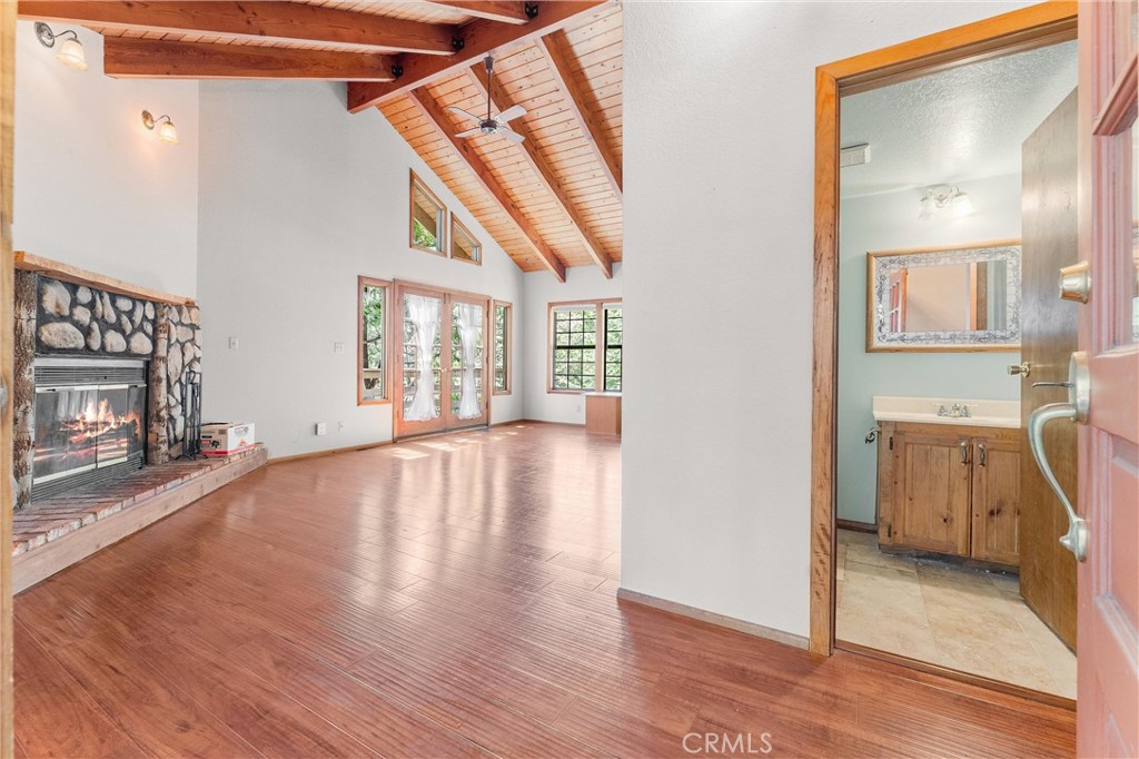 Welcome to 858 Sierra Vista Drive! This stunning 3-story chalet-style property offers an abundance of features and versatile spaces, perfect for a primary residence or a vacation home! Consisting of 2 Bedrooms, 3.5 Bathrooms: Two spacious primary suites, each with its own en suite bathroom, provide ultimate privacy and comfort. The third floor serves as the main level, featuring a large living room with a cozy fireplace, cathedral ceilings, and access to a charming deck, perfect for relaxing or entertaining. The third floor also includes a spacious dining area, a well-equipped kitchen, a convenient laundry room, a half bathroom, and the front entry. The second level of the home contains the two spacious primary suites, each with its own en suite bathroom, to provide ultimate privacy and comfort. Primary Suite 1 provides the warmth of a second fireplace, a walk-in closet, a private deck to unwind and soak in the serene surroundings, ands the attached en suite has a lavish clawfoot tub with a shower. Primary Suite 2 is spacious with an attached en suite that has a tub/shower combo. The first level features a large flex space that can be used as a bedroom, playroom, or any other purpose to suit your needs, along with an additional bathroom and a secondary entrance. There is ample built in storage on this level as well. This chalet-style home is designed to offer both practicality, comfort, and versatility, with its multiple decks, spacious interiors, and thoughtful layout. Whether you're enjoying a quiet evening by the fire or hosting friends and family, this home is sure to impress. Don't miss the opportunity to make this exceptional property your own! Located just 10 minutes from Lake Arrowhead Village, 12 minutes to Lake Gregory, and 45 minutes to Big Bear Lake and Ski Resorts. There is an abundance of year round outdoor activities just minutes away from the property...whether you like to Snow Ski, Boat, Hike, Mountain Bike, or more...this home is centrally located and sits in a great neighborhood surround by beautiful mature trees.
